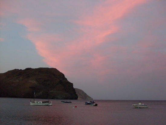 Spätestens jetzt fand ich's schade, dass das der letzte Abend am Gabo de Gata war, aber es war Donnerstag und der erste Bus nach dem morgigen fuhr erst wieder in 3 Tagen. Als es dunkel war suchten wir uns einen Platz zum schlafen. Tobi und Les blieben an einem vorher ausgeguckten Spielplatz. Da es mir und Eduard dort zu laut war suchten wir uns am Strand, im Windschatten einiger Fischerboten, eine ruhigere Ecke zum schlafen.
