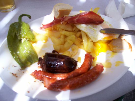 Das interessanteste Stück der Zusammenstellung war dabei eine Wurst mit dem klingenden Namen "Black Pudding". Wie sich nachher herausstellte, war es eine, wenn auch andalusische, Variante der englischen "Wurst-Spezialität". Scheinbar mussten wir erst noch etwas tiefer in die Berge rein, um wirklich etwas Regionales auf den Teller zu kriegen, aber immerhin: In den Alpujarras gab's kein Mc'Donalds...wenigstens soviel.