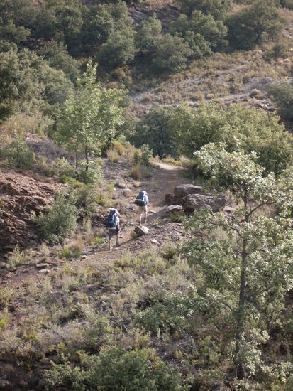 Den GR7 gingen wir nicht bis zum Ende durch, da er um Trevelez herum führt und den Wanderer ganz im Norden der Stadt ausspuckt. Da der Campingplatz aber unter Trevelez liegt bogen wir kurz vor der Stadt von unserer Hauptwanderroute ab und fanden über einen zwar fast zugewucherten aber auf meiner Karte glücklicherweise noch verzeichneten Trampelpfad auf die Hauptstraße (die übrigens in mal größerer, mal geringerer Entfernung immer unterhalb des GR7 liegt zwischen Lanjaron bis Juviles), der wir dann bis zum Campingplatz den letzten Kilometer folgten.