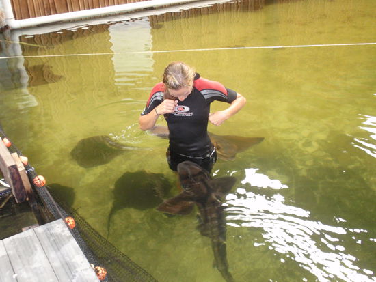 Wir waren im Shark und Ray Center und haben HAIE und ROCHEN gefuettert!!!!
