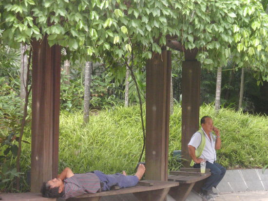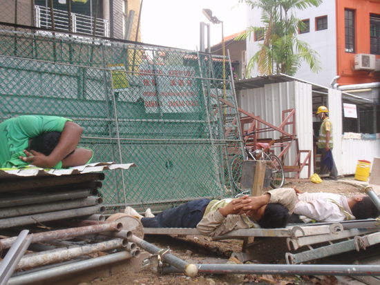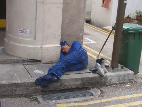 Zur Mittagszeit halten die Arbeiter "Siesta" und zwar da wo sie gerade gehen oder stehen!