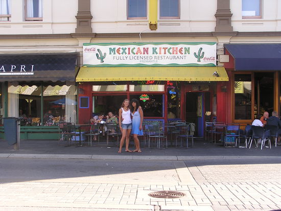 In einem kleinen mexikanischen Restaurent wurden wir in die Kunst des Kellnerns eingefuehrt. Anfaenglich waren wir ziemlich befangen, zumal wir NOCH NIE gekellnert haben. Aber es war dann doch ziemlich einfach, weil es total "relaxed" zuging. Unser Chef war gut drauf und unsere Kollegen waren ALLE im Schnitt ca. 10 Jahre juenger als wir.