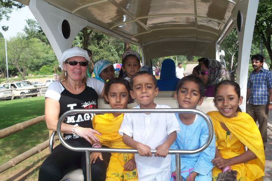 Meine Freunde sind so happy, mich zu sehen, dass sie mir gleich alles zeigen wollen - und das bei dieser Hitze.Hier steh ich noch lustig und munter im Shahi-Fort, nichtsahnend, dass ich eine Stunde später in Hamads Haus einen Hitzeschock bekommen sollte. Aber so richtig: mit Erbrechen, Darniederliegen usw. Dennoch muss ich zugeben, hab ichs auch genossen. Wann hat Frau das schon einmal: Mein ledierter Körper liegt auf einer Liege auf dem Dach des Hauses, von der Hitze dahin gerafft, 4 Männer fächeln mir Luft zu, einer kühlt mich mit Eis. Tja, da werdet auch ihr neidisch, nicht wahr? Muss zugeben, nachdem es mir besser ging, hab ich die Situation einfach nur genossen und hätt mich totlachen können.
