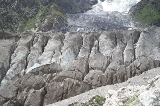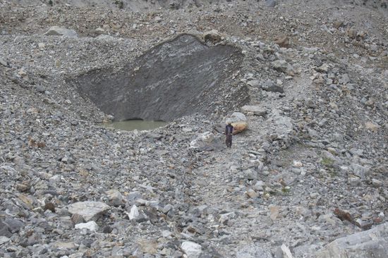 Vom Herrligkoffer-Camp, 3.450 m, (Basecamp der Südseite des Nanga-Parbat)gelangt man zur Rupalwand. Sie ist die höchste Eiswand der Erde und galt lange Zeit für undurchsteigbar. Der Münchner Arzt Prof. Dr. K. M. Herrligkoffer bezwang 1970 diese außergewöhnliche Wand. Was ihr also vorne seht, ist kein Stein sondern alles Gletschereis.