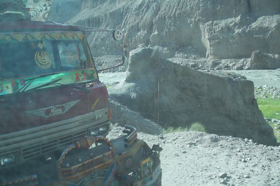 Die pakistanischen Touristen aus dem Süden des Landes sind völlig aus dem Häuschen, kennen sie doch keinen Winter mit Eis und Schnee. Männer und Frauen (im Shalwar Kameez) machen sich einen Spaß und rutschen immer wieder die Eispiste auf diesem Gletscher runter. Für mich ist es ein Gaudi, ihnen zuzuschauen.