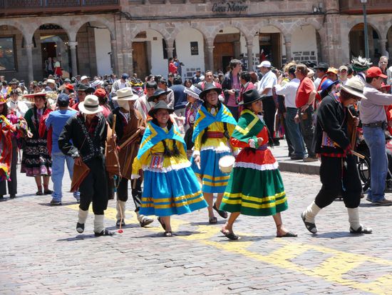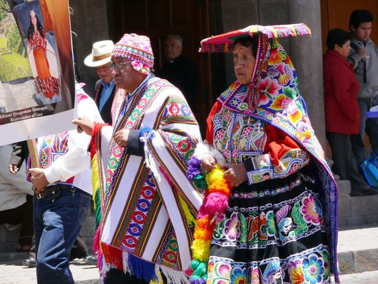 Heute hatten wir auch echt Glueck mit dem Wetter und wir wurden wieder mal Zuschauer eines Volksfestes (Fiesta de lengua Quechua).