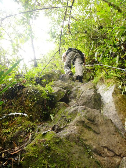 Ausserdem gab es noch etliche Kletterpassagen zu ueberwinden. Nach ca. 40 min waren wir dann oben.