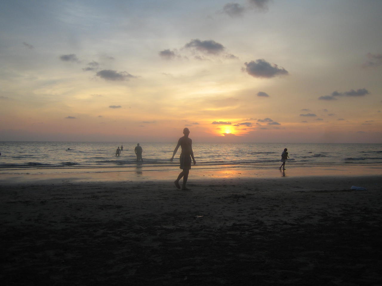 Wieder zurueck im Bungalow brauchten wir erst nochmal ne Muetze voll Schlaf. Dann ging es ab an den Strand der ca. 6, 78 Meter vom Bungalow entfernt ist. Und so sieht es aus, wenn auf Koh Chang die Sonne untergeht.