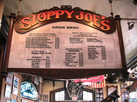 Heute schlittern wir ja gerade wieder in eine Weltwirtschaftskrise, aber der Unterschied ist, dass heute in Sloppy Joe´s Bar jeder Gast gnadenlos um 7,75 USD für einen Cocktail aus dem Plastikbecher erleichtert wird. So auch ich. Irgendso ein Strawberry-Rum-Punch-Daiquiri wird vor mir auf den Tresen geknallt und ich knalle einen 10-USD-Schein zurück.