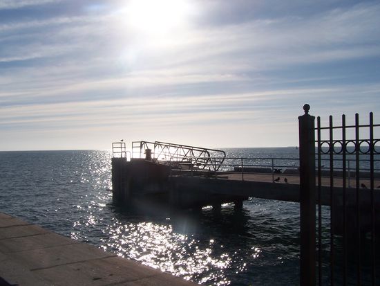 Zurück im touristischen Bermuda-Dreieck von Key West´s Zentrum, entdecke ich, dass es soviel leerer und ruhiger geworden ist. Ich gehe der Sache mal nach - zum Kreuzfahrt-Pier. Und bekomme die Antwort: Ein Kreuzfahrer verschwindet bereits am Horizont und das andere Monsterschiff legt gerade ab. Es kehrt Ruhe ein in Key West ! So ca. 5000 Menschen weniger auf kleinstem Raum machen eine Menge aus ! Ich widme mich dem shopping in nunmehr nicht mehr völlig überfüllten Läden. Und verspüre Hunger. Ein nettes Restaurant ist schnell gefunden und die Barkeeperin ist sehr nett ! Ihrer Empfehlung, was ich essen soll, bin ich allerdings nicht gewachsen: Der Salat ist ein ganzes Gewächshaus auf einem Teller ! Ich schaffe nicht 1/3 davon.