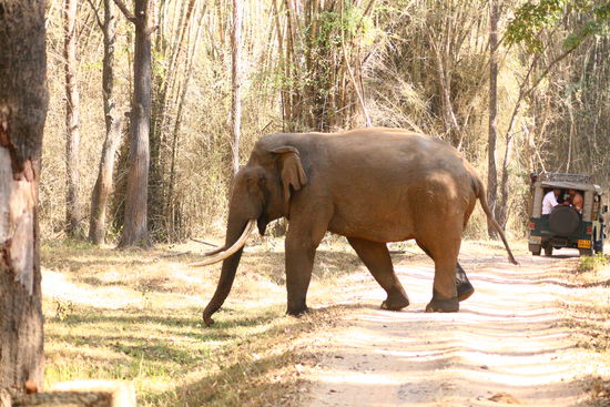 Habe viele kleine und grosse Tiere gesehen (die ich sonst nur aus dem TV kenne) und das Highlight war ein riesiger Elefantenbulle, der nur wenige Meter vor unserem Auto den Weg ueberquerte. Grossartig, wenn mein Herz auch erst einen Huepfer gemacht hat, als dieses unglaublich riesige Tier aus dem Unterholz auf uns zu kam!