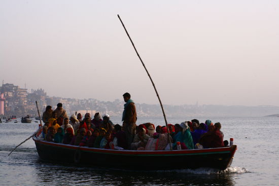 Ein MUSS ist die Bootsfahrt auf dem Ganges waehrend Sonnenaufgang, denn dann liegt ein leichter Nebel ueber dem Fluss und man sieht die spektakulaersten Szenen am Wasser.