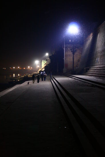 Auf der einen Seite baden die Leute und trinken sogar das Wasser (denn es ist ja heilig!) und zehn Meter weiter werden die Rinder im Fluss gewaschen. Wieder ein paar Meter weiter wird die Waesche gewaschen, ober am Rand wird an eine Mauer gepinkelt, was letztendlich auch wieder in den Fluss fliesst (wobei bestimmt ein Grossteil von Varanasis Abwasser ebenfalls im Ganges landet!), dann kommt man an den "burning Ghats" vorbei, wo alle Koerper verbrannt werden und die Asche wird auch dem Wasser uebergeben. Hier und da schwimmt mal ein Plastiksack mit einem toten Koerper als Inhalt an einem vorbei und am Rand beobachtet man wie der Muell, der dort gelagert ist, in den Ganges geschwemmt wird.