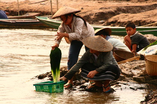 Und nun kommen jede Menge Bilder die verdeutlichen, wie wichtig der Mekong fuer die Laoten ist. Die Lebensader des Landes......