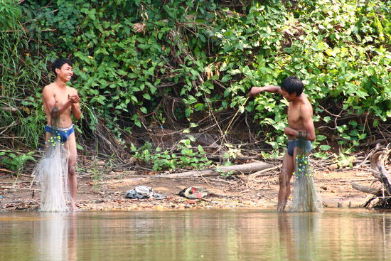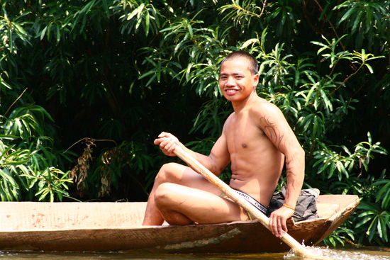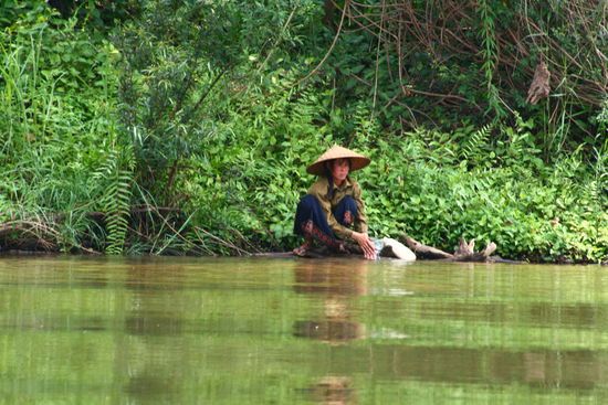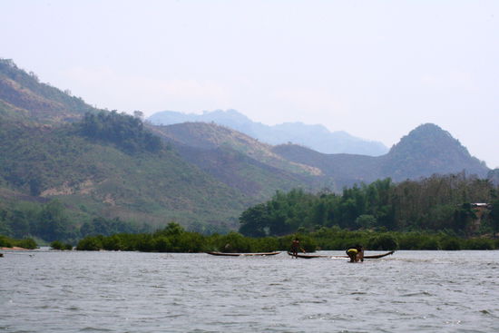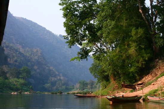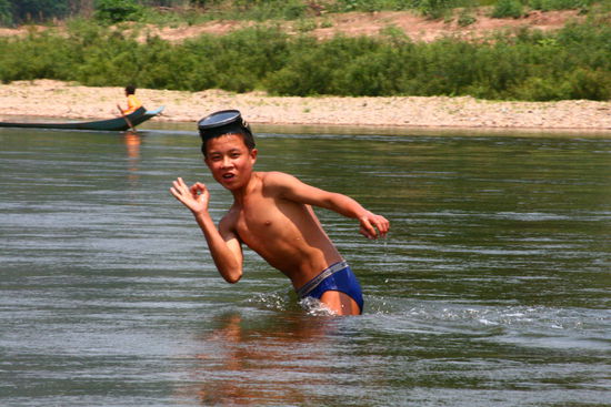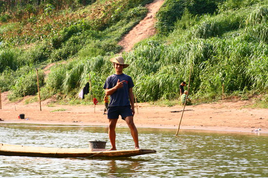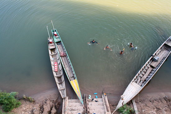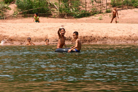 In diesen zwei Tagen auf dem Boot, kann man eine wunderschoene Natur geniessen, koennte man bestimmt noch besser, waeren da nicht diese lauten......lassen wir das...ganz so schlimm war es auch wieder nicht, schliesslich kann ich nicht behaupten, ich haette keinen Spass gehabt! Den positiven Ausgleich bekommt man durch die zahlreichen planschenden und quikenden Kinder im Fluss, die einem froehlich zuwinken und man hat das Gefuehl die laotische Bevoelkerung bestuende nur aus Kindern.