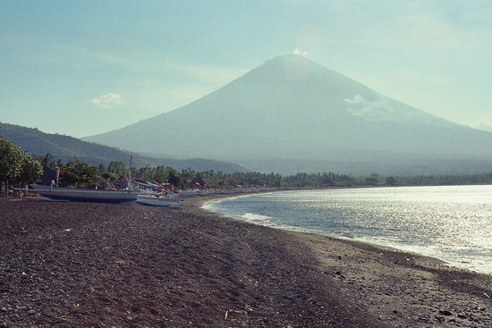 Die nächsten Tage verbringen wir wieder am Strand und im Ort, wir haben einen Warung entdeckt, direkt am Meer gelegen. Ein wunderschöner Platz! Wir gehen auch mal gerne am späten Nachmittag hin, dann haben wir von dort einen traumhaften Blick auf den Gunung Agung.