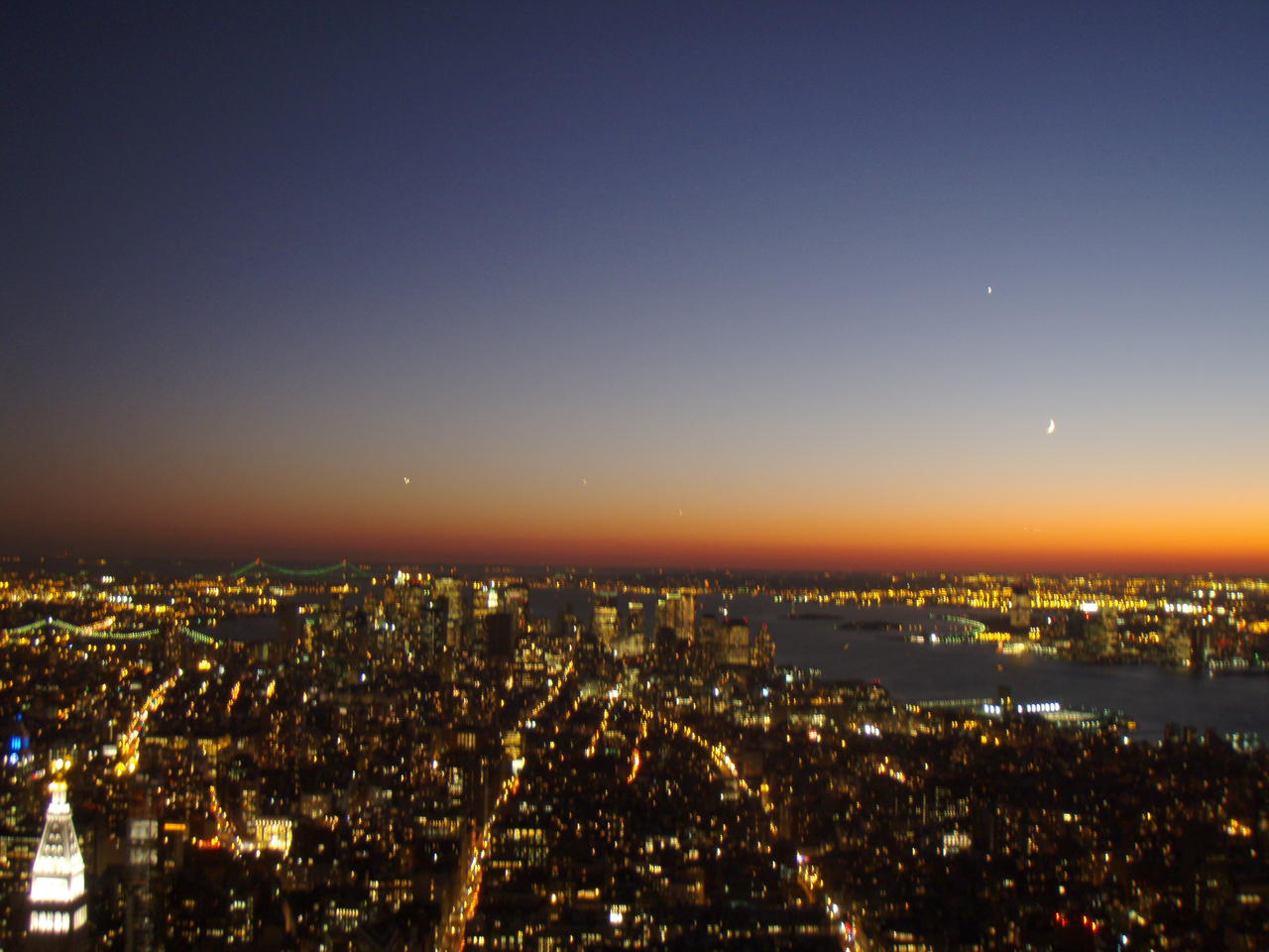 Nach einem Abstecher im Guggenheim Museum. Sehr geile Architektur und interessante Exponate. Bilder von van Goch und Picasso wurden mir durch die Audiotour, bei der man so etwas wie einen Walkman dabei hat und an den dementsprechenden Bildern die Nummern eintippt, erklaert. Danach fuhr ich zum Empire State Building. (auch mit Audiotour). Ich schaffte es wirklich noch bis Sonnenuntergang oben auf dem 86sten Stockwerk zu sein. Der Ausblick ueber die bereits leuchtende City war gigantisch und dazu noch ein tiefrot bis blauer Himmel.