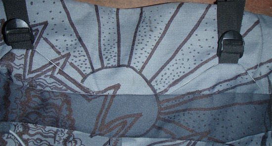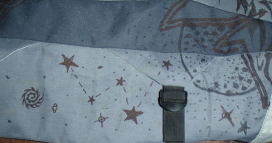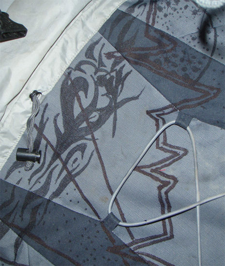 O.K. den hab ich etwas verbockt. Die Tribal des Windes sollten zusammen mit der Profil/Ballancelinie ein Gesicht ergeben. Die Linien des Windes sind gleichzeitig meine Dreadlocks und ich blicke gleichzeitig auf alles unter mir. Angedacht war auch noch eine kleine Wolke mit einem schraegen Blitz, der dann auch gleichzeitig im Gesicht aus dem Auge kommt und wie eine Traene nach unten laeuft. Aber das Projekt ist vielleicht auch noch nicht ganz fertig(es gibt immer was zu tun!) und irgendwie ist mir oben der Platz ausgegangen. Haette doch einen 75l +10l kaufen sollen