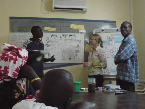 Ursprünglich waren wir davon ausgegangen, dass wir ein mehrtägiges Seminar anbieten könnten, doch nach und nach wurde das immer weiter gekürzt bis am Ende ein Seminar von knapp 3 Stunden heraus kam. Diese "Planänderung" kam unter anderem dadurch zustande, dass unser Kollege Abdou der Meinung war, dass dies ausreiche und ein größerer Umfang die Färber zu sehr von der Arbeit abhalten würde. Außerdem müsste im Falle eines ganztägigen Seminars auf unsere Kosten für Verpflegung gesorgt werden. Im Nachhinein wurde mir klar (bzw. vermute ich), dass er wohl die ganze Zeit dieser Meinung war, uns diese aber zunächst vorenthalten hat um uns nicht zu enttäuschen. Hin und wieder habe ich bei ihm das Gefühl, dass er uns gerne nur das sagt was wir hören wollen, was die Planung eines Projekt erheblich erschweren kann, da mögliche Probleme nicht ausdiskutiert werden. Aber so was gehört dann wohl zu den großen Lektionen interkultureller Kommunikation!