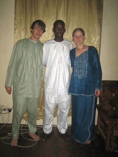 Als ich am Haus ankam, war Matar gerade in der Mosche. Er hätte uns wohl gerne mitgenommen, aber ich war leider etwas zu spät dran, da ich zu lange auf Stefan gewartet und gehofft hatte, dass er doch noch mit kommen kann. Nun saß ich zunächst alleine mit Matars Schwester im Haus und war damit beschäftigt ihre kleinen Zöpfe aufzufriemeln, während die Anderen nach und nach vom Beten wieder kamen. Jeder der zu uns ins Zimmer kam sagte (wenn ich das richtig behalten hab):"Bal ma" (vergib mir) und wir erwiederten als Antwort: "Balnal" daraufhin sagten der Andere wieder etwas und unsere Antwort war "Amin". Nach dem fünften sechsten Mal hatte ich das dann auch endlich drauf und jeder den ich traf war begeistert, dass ich ein paar Worte Wolof konnte.