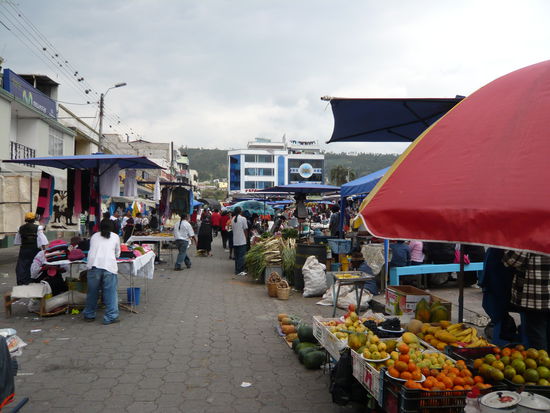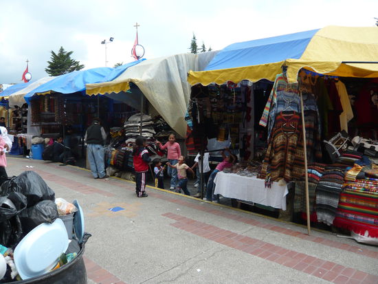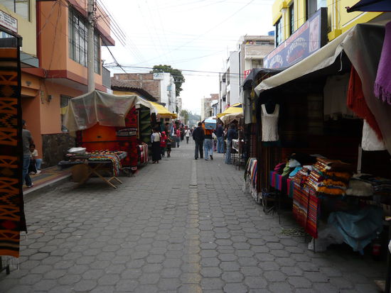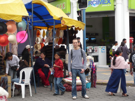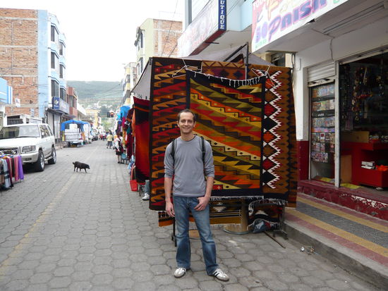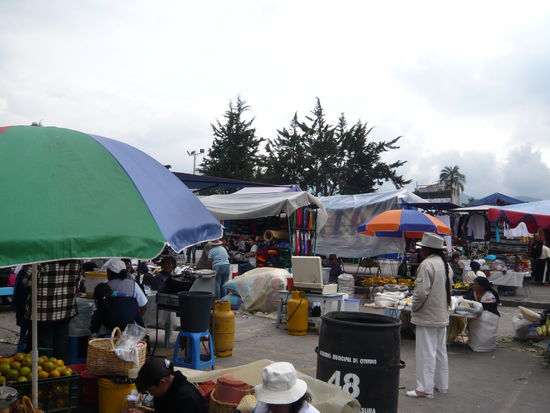 Da wir am Freitag ziemlich flach lagen sind wir am Samstag frueh mit dem Bus nach Otovalo gefahren. Der Ort liegt ungefaehr 2h von Quito entfernt. Nach einer ziemlich holpriegen fahrt sind wir in der freundlichen Stadt angekommen. Otovalo ist bekannt fuer den riesigen Samstagmarkt, auf dem die Einheimischen in traditioneller Tracht herumlaufen und ihrer Sachen versuchen zu verkaufen.