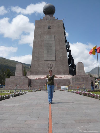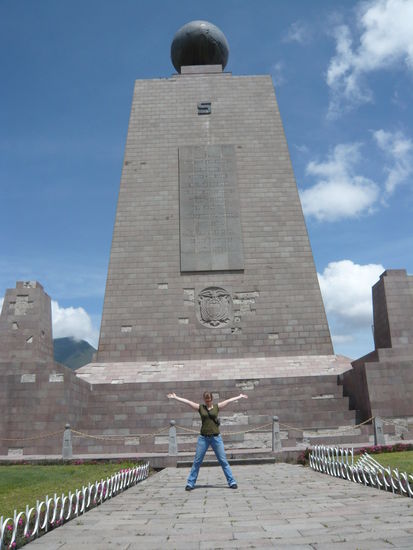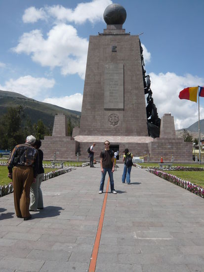 Am Sonntag sind wir dan nach Midad del Mundo gefahren, endlich stehen wir beim Aequator, rechts ist Sueden und links Norden. Es wahr schon schoen es zu sehen, aber nach 2h hatten wir auch genug gesehn, Fotos gmacht, nach Hause...! hihihi