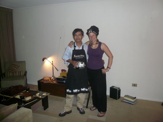 Um 18:00 sind wir in Santiago angekommen und mussten auch nicht lange warten stand Ale auch schon da. Es war so schoen in wieder zu sehen. Wir fuhren als erst zu seiner Wohnung und deponierten unsere Sachen und suchten nach einem Hotel fuer Lujan und Kurt. Als wir die beiden zum Hotel brachten fuhren wir wieder zu seiner Wohnung und genossten die wunderbare Aussicht von seiner Wohnung aus, ueber die Stadt, mit einem guten Glaeschen Wein.