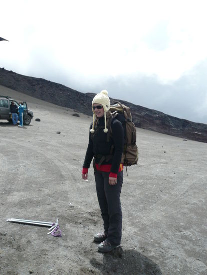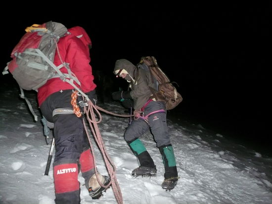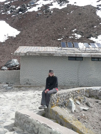 Plótzlich hórten wir rufen (Time to climbe) es war 23:00 in der Nacht, wir standen auf und assen noch eine menge frúhstúck uns liefen sehr warm eingekleidet um 24:00 in der Nacht ab, es war Arschkalt unr der Mond und die Sterne beleuchteten die Landschaft einbischen, fúr den rest hatten wir Stirnlampen. Je hóher wir kamen um so mehr blies der Wind und es wurde immer kálter. Plótzlich passierte es Káti bekamm die Hóhenkrankheit und ich war auch erschópft, 400 m vor dem Ziel mussten wir Deprimiert und traurig zur ACS Hútte zurúckkehren. Wir waren leider doch zuwenig anklimatisiert, doch im nachhinein war es ein Grandioses und Traumhaftes erlebnis.