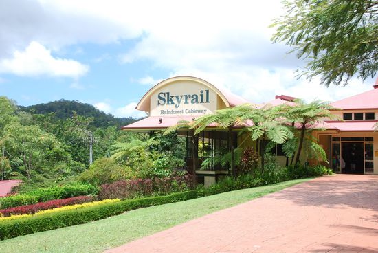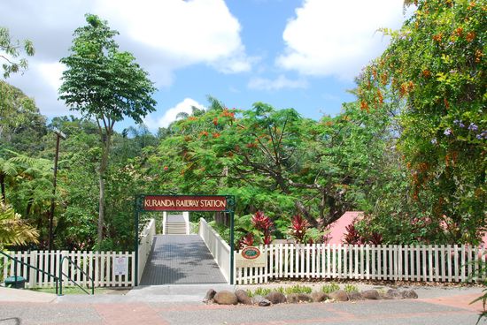 Heute ging es ab in den Regenwald! Mit der Gondelbahn sind wir durch bzw. über die Bäume zu einem Ort mit dem Namen Kuranda gefahren. Die Fahrt war unglaublich schön. Den Regenwald zu beschreiben ist fast unmöglich, auch die Bilder können nicht vermitteln wie dicht und grün das alles hier bewachsen ist. Die höchsten Bäume werden über 50 m hoch und nur ca. 1 % des Sonnenlichts erreichen den Boden. Der Regenwald gehört seit einigen Jahren zum Weltkulturerbe und ist neben dem Ayers Rock eines der am meisten besuchten Ziele in Australien. Dies merkt man in Kuranda! Das totale Touristenkaff. Ein Souvenirstand am anderen und es wird ein Plempl da verkauft, könnt ihr euch nicht vorstellen. Dazu gibt es Zoos und Schmetterlingsfarmen usw. Eine Art ökologisches Disneyland für Pauschaltouristen. Nix für uns! Highlight des Tages waren für uns einige Japaner, die damit man sie von den anderen Japanern unterscheiden konnte einen grossen roten Aufkleber auf der Brust mit einer Nummer drauf hatten. Somit konnte der Oberjapaner immer sofort erkennen wer zu seiner Gruppe gehörte und wer nicht. Touristen mit Nummernschild, völlig gaga! Beim Einsteigen in die Bahn haben die Japaner aber trotz Nummer und Aufkleber ein mittleres Chaos verursacht weil keiner kapiert hat wie das funktioniert. Aber sind ein lustiges Volk, selbst im grössten Chaos haben die immer gute Laune und ein Lächeln im Gesicht!