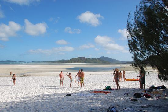 Am dritten Tag erreichten wir dann endlich Whitehaven Beach. Einer der 10 schönsten Strände der Welt! Das Besondere an Whitehaven Beach ist der Sand. Weil genau hier zwei tektonische Platten aufeinander treffen und ständig aneinander reiben, entsteht hier der feinste und reinste Sand der Welt. Der Sand ist so rein, die Gläser für das Weltraumteleskop Hubble wurden aus diesem Sand gemacht.