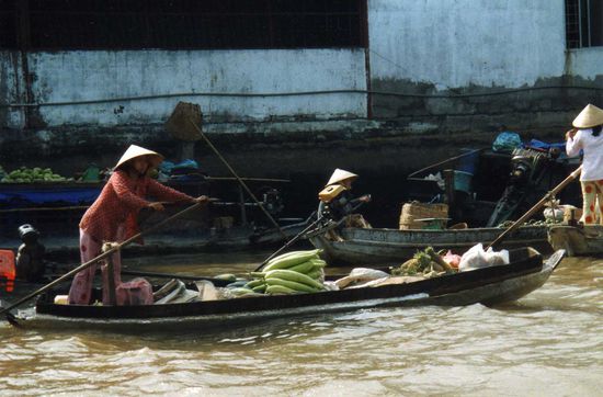 Am nächsten Tag fliegen wir nach Saigon und fahren von dort aus nach Can Tho, das ist eine Provinzhauptstadt im Mekongdelta. Wir fahren mit dem Boot zu den schwimmenden Märkten von Cai Rang, einem der größten des Mekongdeltas. Es ist ein einmaliges Erlebnis, das bunte Treiben auf den Booten zu beobachten.