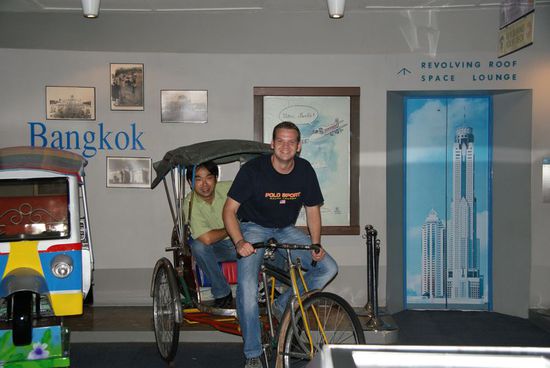 Es wird ja oft vom "Moloch Bangkok" gesprochen. Dies kann ich leider auch bestätigen. Ich fahre Morgens und Abends, wenn es nicht regnet, mit dem "Motorcycle" zur Arbeit. Es hört sich vielleicht jetzt übertrieben an, aber ich muss manchmal zweimal luftholen, damit ich atmen kann! Die Fahrten sind jedes Mal ein Abenteuer: kreuz und quer, links und rechts überholen, bei "rot" überall vordrängeln: aber immernoch der schnellste Weg von zur- und von Arbeit Heim. Meistens unter 10min.! Wenn es allerdings mal regnet (kommt ja hier schon mal häufiger vor) fahre ich mit dem Taxi. Egal wo ich bisher in Bangkok war, ich habe noch nie mehr als 3€ gezahlt. Gestern war ein neuer Rekord von der Arbeit mit dem Taxi nach Hause, in knapp 1,5 Std.! Da vergeht einem allerdings die Lust.