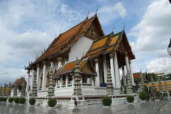 Tja, mein letztes Wochenende in Bangkok liegt schon etwas laenger zurueck. Wir haben es in vollen Zuegen genossen und sind noch ein wenig durch die Stadt gezogen. Haben das Ein- oder Andere noch fuer meine lange Reise eingekauft und letztendlich noch einen Besuch im Wat Benchamabophit und Wat Suthat gemacht.