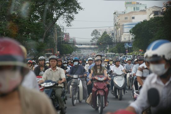 Ich habe in meinem Leben noch nicht so viele Motorraeder auf einmal gesehen. Ich dachte Bangkok ware schon heftig, aber in Vietnam habe ich manchmal keine Autos gesehen, nur Motorraeder- soweit das Auge reichte!