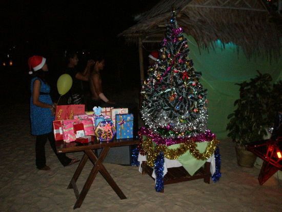 Hier haben wir heilig Abend gefeiert. Es gab Abendessen mit Kerzenschein (und Techno am Strand. Wir hatten sogar einen Weihnachtsbaum und für jeden gab es ein Geschenk. Diese wurden verlost. Ich hatte das Glück und habe einen Bikini!!! gewonnen...wow.....