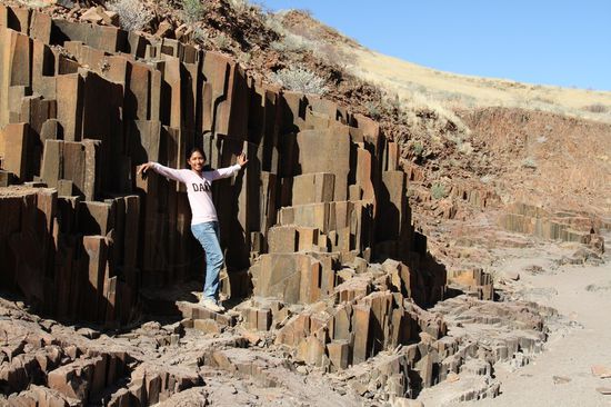 Hier hatten wir 2 Naechte. Am freien Tag im Damaraland haben wir uns den versteinerten Wald, die Twyfelfontain mit den Steingravierungen sowie die "Orgenpfeiffen" und den Brandberg angeschaut. Am besten hat uns der verteinerte Wald gefallen. Dort konnte man wirklich versteinerte Baeume (120N$ fuer 2 Personen und Auto) die sage und schreibe 260mio Jahre alt waren anschauen.