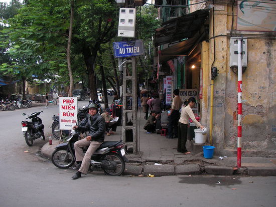 Der erste Eindruck von Hanoi ist SUPER !! Ich hatte mir das in meinen kuehnsten Trauemen nicht vorstellen koennen was einen hier erwartet. Eine pulsierende Stadt, mit wirklich hunderttausenden Mofa`s, dazu Auto`s , Radfahrer`n und es scheint keine Verkehrsregeln zu geben. Aber trotzdem klappt das recht gut, alles ist in Bewegung auch in entgegengesetzter Richtung, quer zur Strasse usw. Dazu ein Hupkonzert welches den ganzen Tag lang nicht aufhoert. Das Leben spielt sich anscheinend zur Gaenze am Strassenrand und auf den Gehsteigen ab. In der Innenstadt herrscht den ganzen Tag ueber Marktreiben. Ein Essenstand reiht sich an den anderen, und auch sonst kann man hier alles kaufen. Es gibt an die 36 verschiedene Strassen wo am gesamten Verlauf nur Waren von der selben Sorte verkauft werden. Bambus,Krauter,Kupfer, Eisen, usw. Alleine nur ein Spaziergang durch die Stadt ist aufregend und wahnsinnig interessant.Ausserdem wird man andauernd von Cyclo und Mopedfahrern angesprochen um ihre Dienst in Anspruch zu nehmen. Heute bin ich den ganzen Tag mit einer Honda herumgefahren, Ho Chi Mingh Museum+Wohnhaus, Kriegsmuseum. Am Abend war ich vor lauter konzentrieren ganz schoen fertig. Das auch deswegen weil man so wahnsinnig viel Moped`s und Fahrraeder sieht, welche komplett vollgepackt sind mit allen was man bei uns normalerweise mit einem Lastwagen transportiert. Huhner, Schweine, Leitern, Blumentoepfe, usw.(eigentlich unvorstellbar, und man muss unter der Fahrt immer wieder Lachen).Die Augen brennen auch wegen den vielen Abgasen. Das Wetter ist mit 25 Grad optimal. Gestern habe ich bei den mobilen Essenstaenden 2 mal Suppe gegessen, Rind und Huhn, sowie Glasnudeln und frische Krauter als Einlage. War ausreichen, saettigend und hat super geschmeckt.Als Nachspeise eine kleine Ananas von der Strassenverkauferin. Heute hat es gegrillten Fisch gegeben, als Beilage wieder frische Krauter, sowie Nudeln, Erdnuesse und Chilli alles in einer Pfanne vermischt und serviert. Dazu ein Hanoi-Bier und fuer alles fuenf "Euronen" bezahlt.