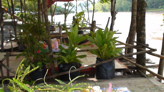 Am naechsten Morgen fuehle ich mich leicht zerknittert und ich beschliesse, den Tag ruhig anzugehen und etwas meinen Ar.... zu schonen, denn der Sattel meiner geliebten Honda Baja ist doch recht hart und nach laengeren Strecken muss ich jeweils nur seinetwegen eine kleine Pause einlegen. So mache ich nur einen kleinen Ausflug dem Kok River entlang. Etwas nordwestlich ausserhalb des Stadtzentrums findet sich auf der linken Fluss-Seite ein Park mit Dutzenden von kleinen Restaurants. Zum Teil sitzt man auf kleinen Bambus-Plattformen direkt ueber dem Fluss, sehr gemuetlich. Ideal geeignet fuer ein romantisches Tete-a-Tete am Abend.