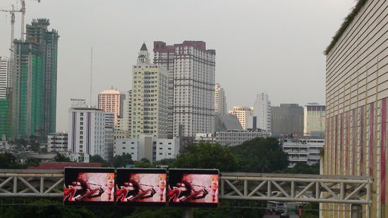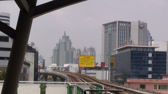 Meine Freunde wissen schon, dass ich total auf den Bangkoker Skytrain (Hochbahn) stehe. Ich finde es einfach supergeil, so zwischen den Hochhaeusern durchzu"fliegen", es ist ein bisschen wie in einem Vorspann zu einem Science-Fiction-Film. Die Wolkenkratzer in Bangkok sind zum Teil wirklich extrem schoen und fantasievoll.