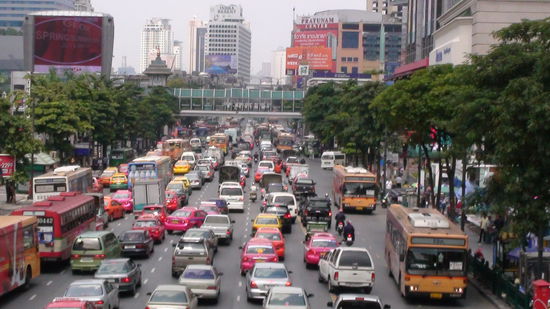 Die beiden naechsten Tage habe ich eigentlich nichts anderes gemacht als Skytrain-Fliegen, durch Bangkok zu streifen und dabei meine Ausruestung zu vervollstaendigen. An Kleidung hatte ich praktisch gar nichts mitgenommen, denn ich kaufe sehr gerne in Bangkok ein und zuhause kann ich dann Zeugs tragen, das niemand sonst hat. Es gibt beim Skytrain nur zwei Linien, die sich kreuzen. Die eine Linie hat achtzehn Stationen, die andere acht, sie liegen zum Teil recht weit auseinander. Ich bin jeweils einfach irgendwo ausgestiegen und durch die Stadt geschlendert. Wenn es mir dann zu heiss wurde oder mir meine Fuesse weh taten, habe ich den Weg zum Skytrain gesucht, wo ich mich wieder etwas hinsetzen konnte. Angenehm klimatisiert ist es dort auch, sodass die noetige Abkuehlung stattfinden kann. Eine Tageskarte kostet 100 Baht (ca. 2 Euro)und sie kann an jeder Station geloest werden. Damit vermeide ich natuerlich auch die ueblichen Touristenfallen, da alles mehr oder weniger vom Zufall bestimmt ist. Aber ich habe sicher Einiges vom normalen Strassen-Leben in Bangkok mitbekommen.