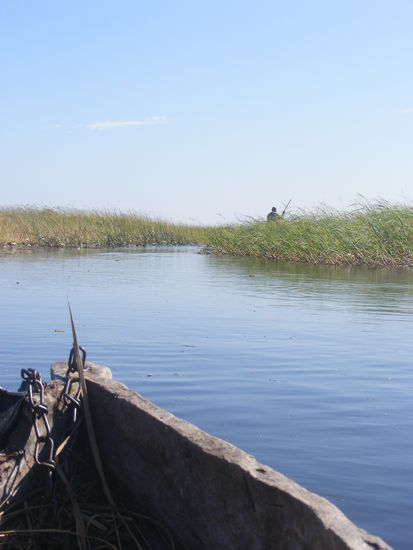Wir fuhren mit dem Mokoro (sprich; Mokolo, ein traditionelles Holzkanu) ins Delta hinein und zelteten dort.