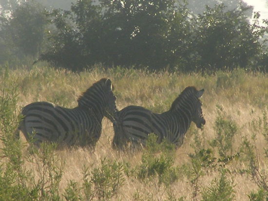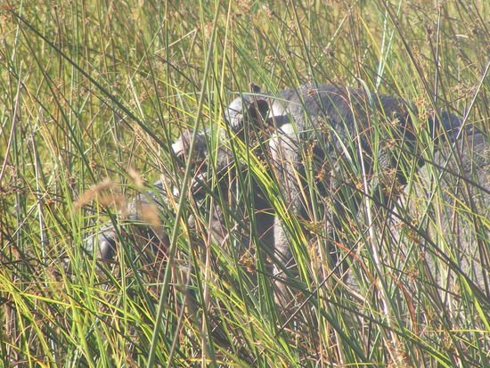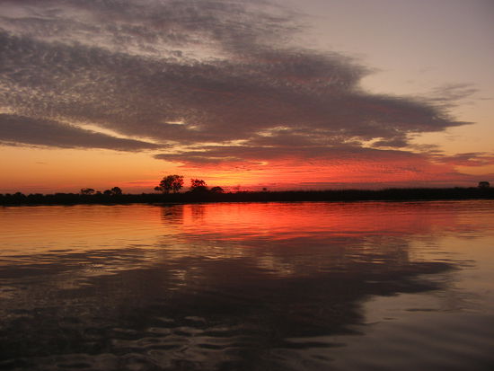 Wir entdeckten Elefanten, Zebras und abends beim Sonnenuntergang waren wir mit unserem Mokoros im Hippo-Pool, wo 3 Nilpferde im Wasser plantschten!