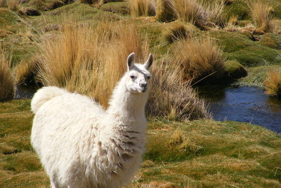 Dazwischen grasgruene Oasen, in denen Lamas grasen, als haetten sie sonst nichts zu tun...