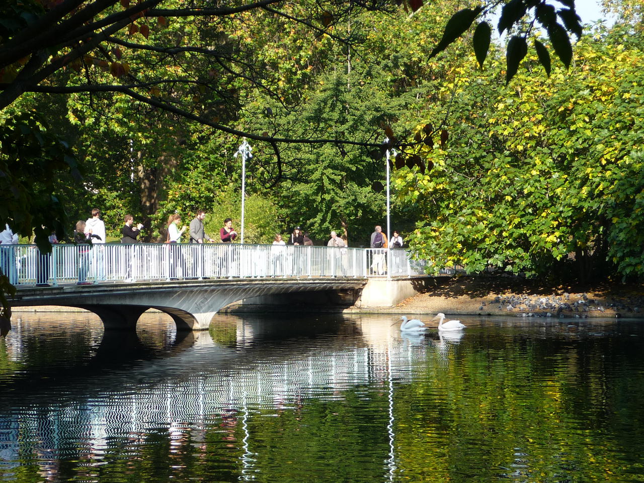 Gleich gegenüber dem Horse Guards liegt der Königliche St. James Park an desen Ende der Buckingham Palast liegt.Hier kann mann dutzende Eichhörnchen beobachten die einen auch aus der Hand fressen.