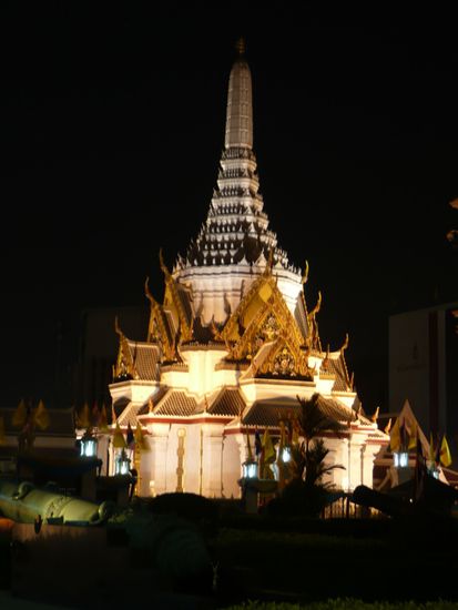 Den Abend läuteten wir mit einer Massage, dieses Mal eine ganze Stunde "Schmerzen", ein. Weil's gestern so schön war, also gleich noch mal in die Massageschule im Wat Pho. Und weiter ging's. Die Khao San Road ist eh schon eine Amüsiermeile und gleich bei uns ums Eck. Also warum in die Ferne schweifen. Letztendlich haben wir auch dort noch ein paar kleine "Besorgungen" gemacht. Der eine oder andere von Euch darf sich freuen . Ein "Vely Stlong Cocktail" und eine Portion Phat Thai für n Äppel und n Ei (reimt sich), gehörten dann einfach zum Pflichtprogramm. Beim Verdrücken haben wir amüsiert die Straßenhändler beobachtet, wie sie vor der herannahenden Gefahr der Touristenpolizei davonflitzten. Keine Lizenz zum Verkauf auf der Straße. Blöd. Aber kaum war die Polizei weg, sah alles so aus wie vorher. Witzig. Am Ende haben wir noch schnell ein bisschen Guthaben für unser Handy erstanden, denn morgen geht die Organisation der nächsten Tage los. Nun sitzen wir hier, schreiben unseren Bericht und schmieden Pläne für Morgen. Genaues weiß man noch nicht, also lasst Euch überraschen....Klingt komisch, ist aber so.