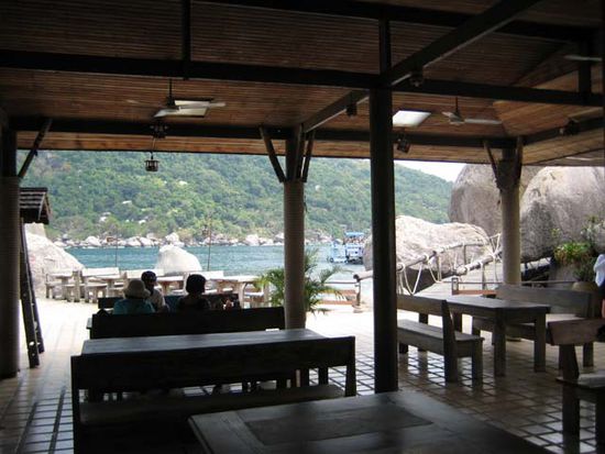 Da der Tauchkurs von meinem Freund aber schon gebucht war, war auch die Abholung am Pier gesichert. Sind abgeholt worden und an den Sairee Beach gefahren worden zur "Davy Jones' Locker Diving" (http://www.techdivethailand.com/). Die Dame dort im Buero meinte, dass jetzt kurz nach der Full Moon Party hier total voll waere. Daher wuerden wir fuer eine Nacht am Mae Hat Beach untergebracht.