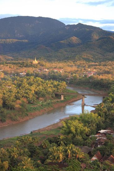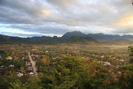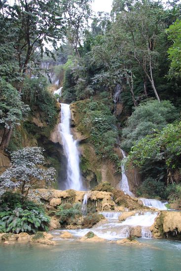 Es hatte die ganze Nacht durchgeregnet. Wir dachten schon, na Bravo, schon wieder ein Tag den wir anders gestalten muessen als geplant. Aber wir riskierten eine Tuk Tuk Ausfahrt zum Tad Kuang Xi Wasserfall. Die Fahrt dorthin dauerte fuer die 32 km eine ganze Stunde. Das Wetter hat gehalten, nein besser gesagt, es wurde von Stunde zu Stunde immer waermer und die Wolken sind dann gegen 14 Uhr verzogen. Der Kuang Xi Wasserfall war echt super schoen, deshalb wollten wir anschliessend unbeding auch noch zum Tad Se Wasserfall. Der war dann von seiner Art her ganz anders aber dafuer noch schoener. Als wir in Luang Prabang zurueck waren sind wir noch die 358 Stufen zum Mount Phousi aufgestiegen. Das hat sich echt gelohnt, somit konnten wir die Groesse von Luang Prabang sehen.
