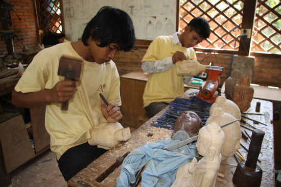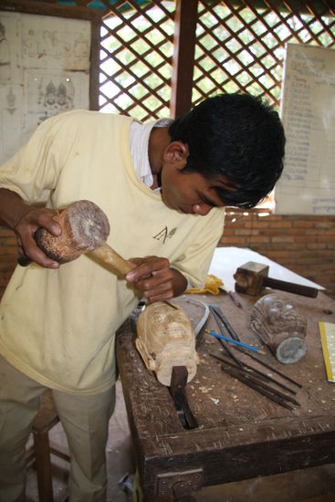 Bis um 9 Uhr ausschlafen war schon sehr ungewoehnlich. Nach dem Fruehstueck sind wir dann gegen 10.30 Uhr zu einer Berufsschule gefahren, um die traditionelle Handwerkskunst (Steinmetz, Holzschnitzer und Maler) zu sehen und den Schuelern bei der Arbeit ueber die Schultern zu schauen.