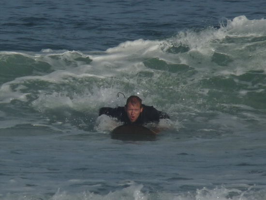 Die erste Welle war dann auch gleich die Beste und Matze hat sich recht wacker, stehenderweise auf seinem Brett gehalten und ist die ganze Wele "geritten"
