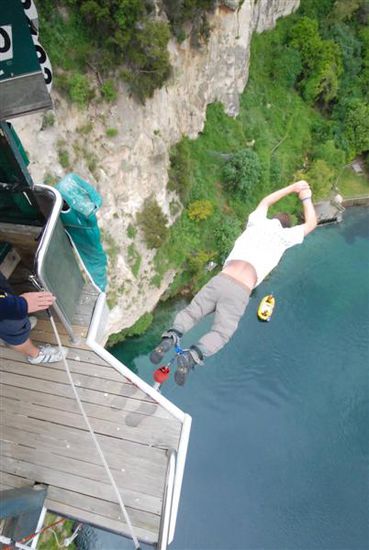 Bungeejump Matze!!! Spontanentscheidung!!! Und das direkt nach dem Fruehstueck. Am Sprungplatz beim zuschauen hiess es auf einmal "ich machs!" Fakten: 47 Meter Hoehe, traumhafte Kulisse, von der Matze vor lauter Aufregung und voller Hose sicher nichts wahrgenommen hat. Seine bereits kaputten Bandscheiben habens ohne Schaden ueberstanden.